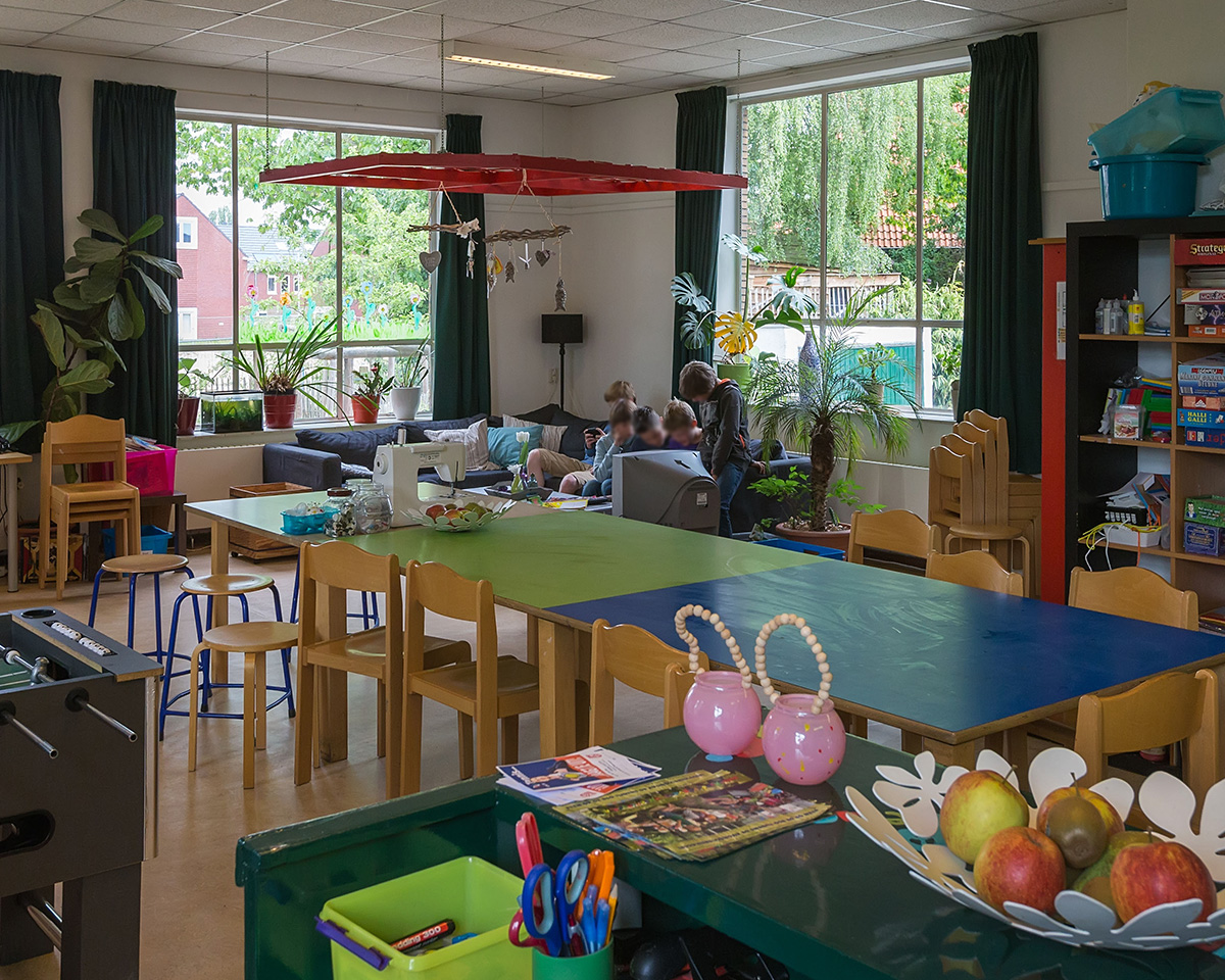 Bij aankomst praten ze eerst de dag door op hun eigen groep en daarna kunnen ze zelf kiezen wat ze gaan doen. Er is een ruimte met een poolbiljart en een tafeltennistafel, er zijn computers, allerlei gezelschapsspelen en er is veel knutselmateriaal. Er zijn ook zithoeken waar kinderen lekker kunnen chillen met een boekje. We bieden activiteiten aan maar laten de kinderen ook vooral vrij in de keuze waar zij die dag behoefte aan hebben.